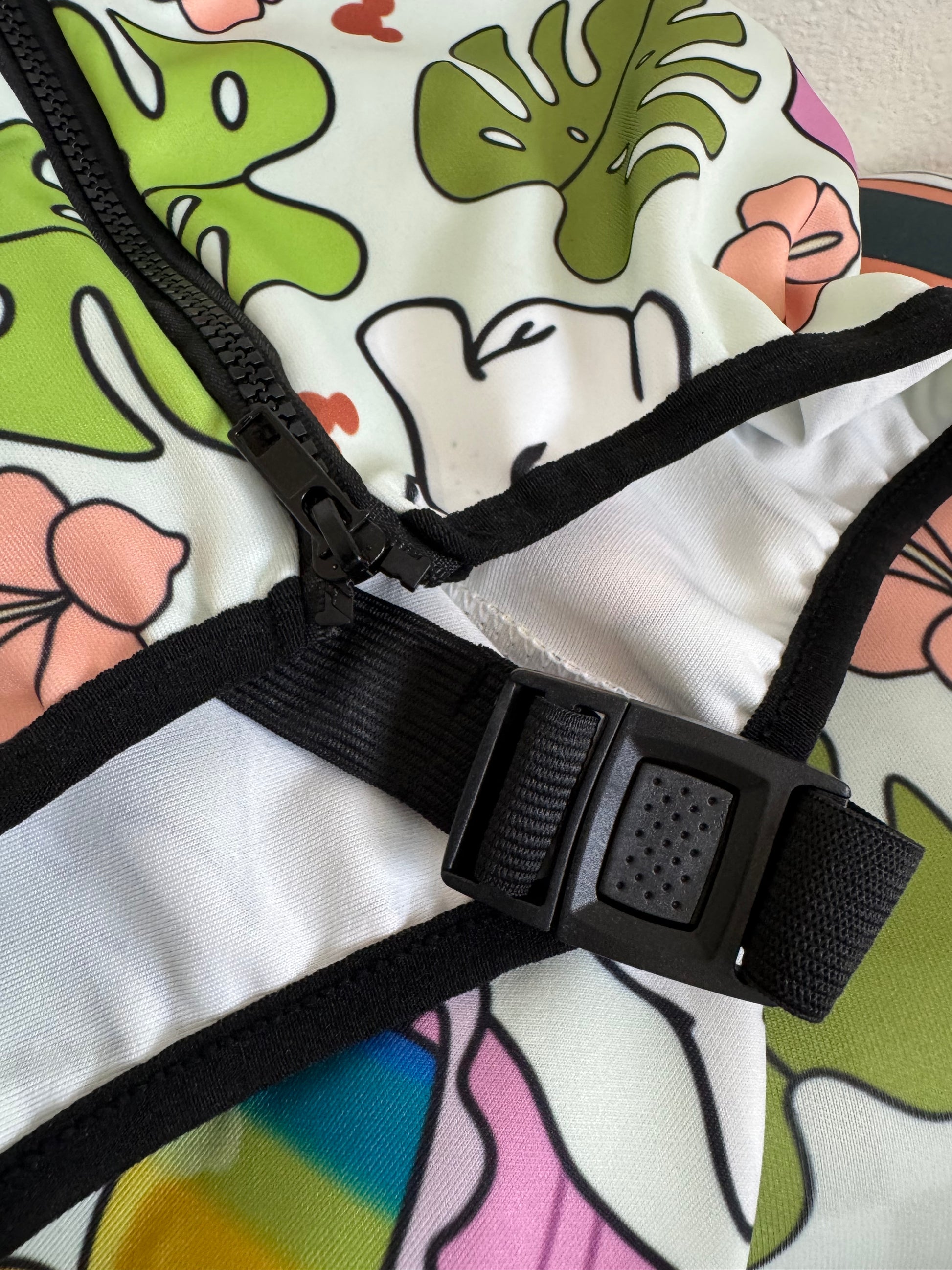 Made with an elastic buckle and zipper closer for easy security checking. Please note that there are cutouts on the top (2) and the right side facing for handles.